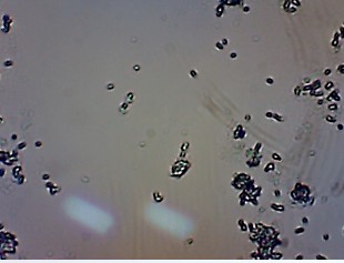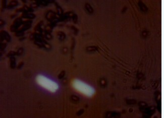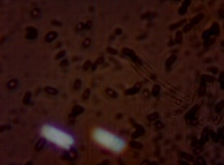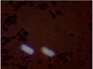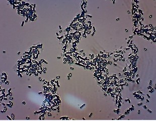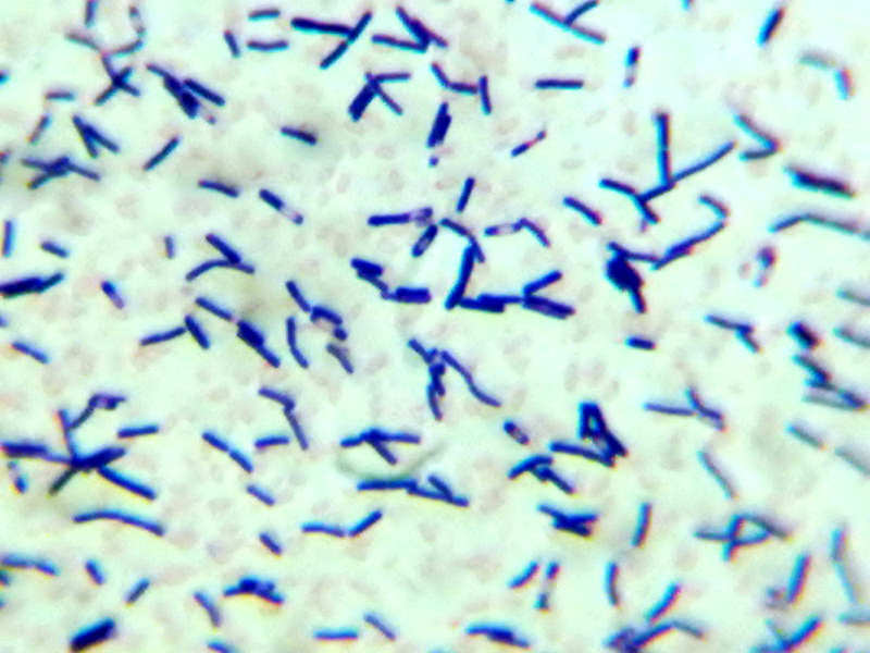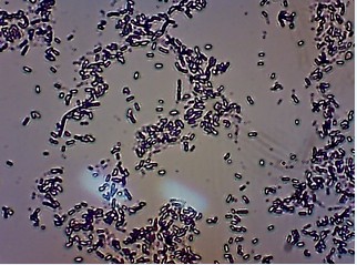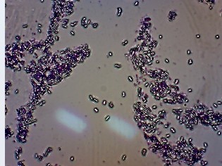 图片比较模糊,看不清楚是阳性还是阴性,可以通过革兰氏染色自己判断,复染后呈红色的为阴性菌,复染后仍未紫色的为阳性菌。另外图片没有比例尺,不好判断短长杆。但是貌似是有芽孢的。