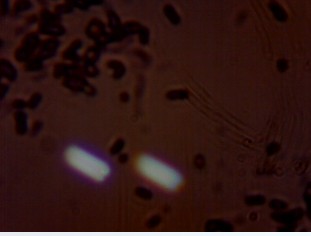 请大哥大姐们帮我看下图,判断一下革兰氏阳性阴性,短杆长杆,有无芽孢?
