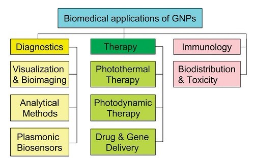 Title: Gold nanoparticles in biomedical applications: recent advances and perspectives 摘要:Gold nanoparticles (GNPs) with controlled geometrical, optical, and surface chemical properties are the subject of intensive studies and applications in biology and medicine. To date, the ever increasing diversity of published examples has included genomics and biosensorics, immunoassays and clinical chemistry, photothermolysis of cancer cells and tumors, targeted delivery of drugs and antigens, and optical bioimaging of cells and tissues with state-of-the-art nanophotonic detection systems. This critical review is focused on the application of GNP conjugates to biomedical diagnostics and analytics, photothermal and photodynamic therapies, and delivery of target molecules. Distinct from other published reviews, we present a summary of the immunological properties of GNPs. For each of the above topics, the basic principles, recent advances, and current challenges are discussed (508 references). |