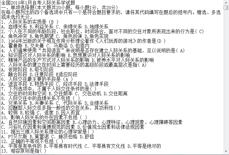 【习题资源】湖南公共关系专业自考人际关系学