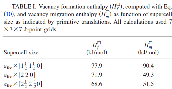 你所说的超胞建立方法应该是正确的,即,把原胞4x4x4,得到一个含有64个原子的超胞,它应该可以看成是你给出的"文献25中的图1"中的那个超胞的原胞。 至于这个[2 2 0]应该是指超胞的平移矢量。 对于4x4x4胞,对应的平移矢量(即图中超胞顶点到面心的那个矢量)就是fcc Al中的矢量[2 2 0]。至于Table 1里讨论的,应该就是不同平移矢量所对应的不同超胞的计算结构。比如[3/2, 3/2, 0]和[5/2, 5/2, 0]对应的应该分别是3x3x3胞和5x5x5胞。而最后文中也提到了[ 1/2 1/2 0] 胞对应的是1x1x1的fcc Al单胞。 |
