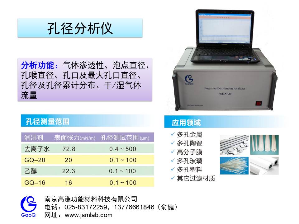孔径分析仪出售,支持样品测试,少量样品的话我可以个人帮忙不收费,样品多了的话就得计费啦,有需要的虫友可以直接联系我,或者电话025-83172259 仪器名称:PSDA-20 孔径分析仪 分析功能:气体渗透性,泡点直径,孔喉直径,孔口及最大孔口直径,孔径分布,干、湿气体流量 应用领域:多孔材料 测试范围:0.1-500μm 样品形状:片状或管式(分别有不同的测试组件) 仪器是自己实验室自主研发的,历时五年逐步完善而得,对测量平均孔径和最大孔特别有用。我就一小硕,觉得这个东西还比较有用,特推荐给广大虫友,希望能帮到大家。如果要买的话就直接电话吧,买东西联系我我可做不了主。留个邮箱chengyxiang@163.com,有疑问的话可以问我,欢迎交流。 最后上传了张实验室做的宣传单,有兴趣的可以看看。一切为了资源帖 ![]() 全自动孔径分析仪 |