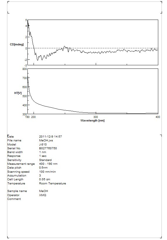 我测了一个化合物的CD,但是不知道怎么去分析,从图上可以得到什么信息,有文献报道,类似物CD在310nm处呈负的cotton效应(-2.35),我从图中可以得到这些类似的信息吗?谢谢高手解答啊!