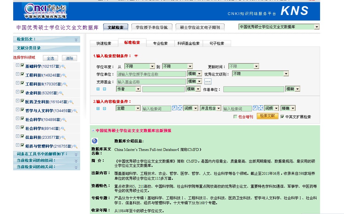 请问大家如何在中国知网上查阅机械专业的全国优秀硕士论文啊?如下图,我就想查询机械工程专业的,特定在机械专业,如何把近几年机械专业的所有优秀论文查到呢?大家交流一下吧
