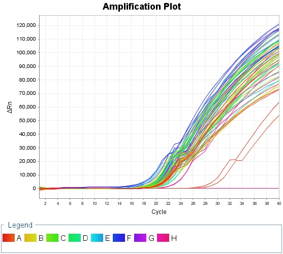 | 请教前辈们:今天做荧光定量PCR,一对引物,31个模板,荧光曲线总趋势很好,但是每条曲线总是在扩增其有折点。琼脂糖凝胶电泳结果显示扩增产物很好,请问这是什么原因? |