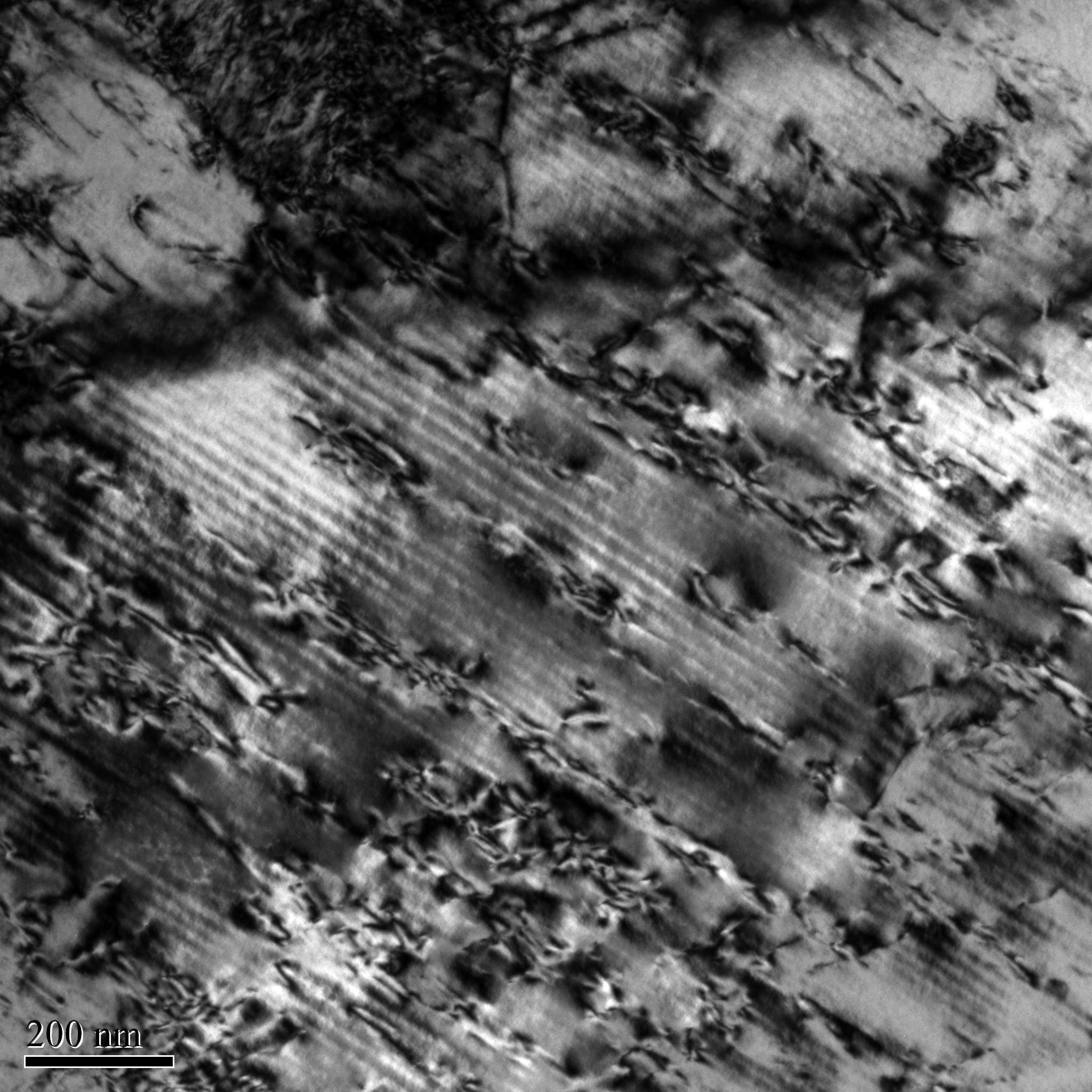 下面是在(850度-应变速率为0.1)时的透射图片,上面只能看到看到一些位错缠结在一起,但是似乎看不出来亚晶的存在,这能说明是动态回复过程吗?