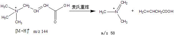 分子式为(CH3)3NCH2CH=CHCOOH,ESI正离子模式,母离子m/z 144,二级全扫描图中只有子离子m/z 58和m/z 59,m/z 60较小。求助子离子碎片的结构和质谱裂解路线。