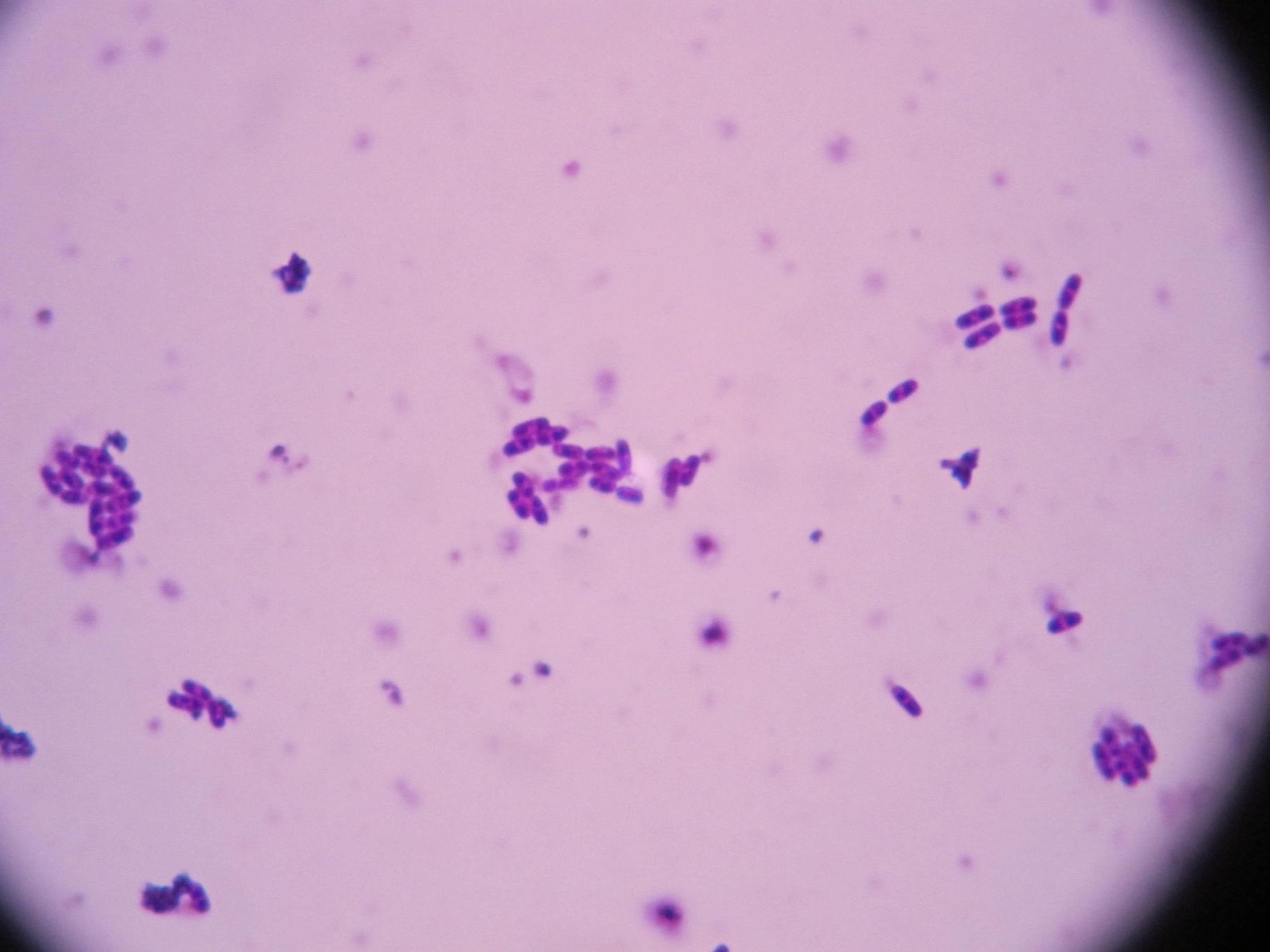 培养动物细胞被污染,闻细胞液有点酒味。染色后是下面的图片,不知道是属于哪种菌。