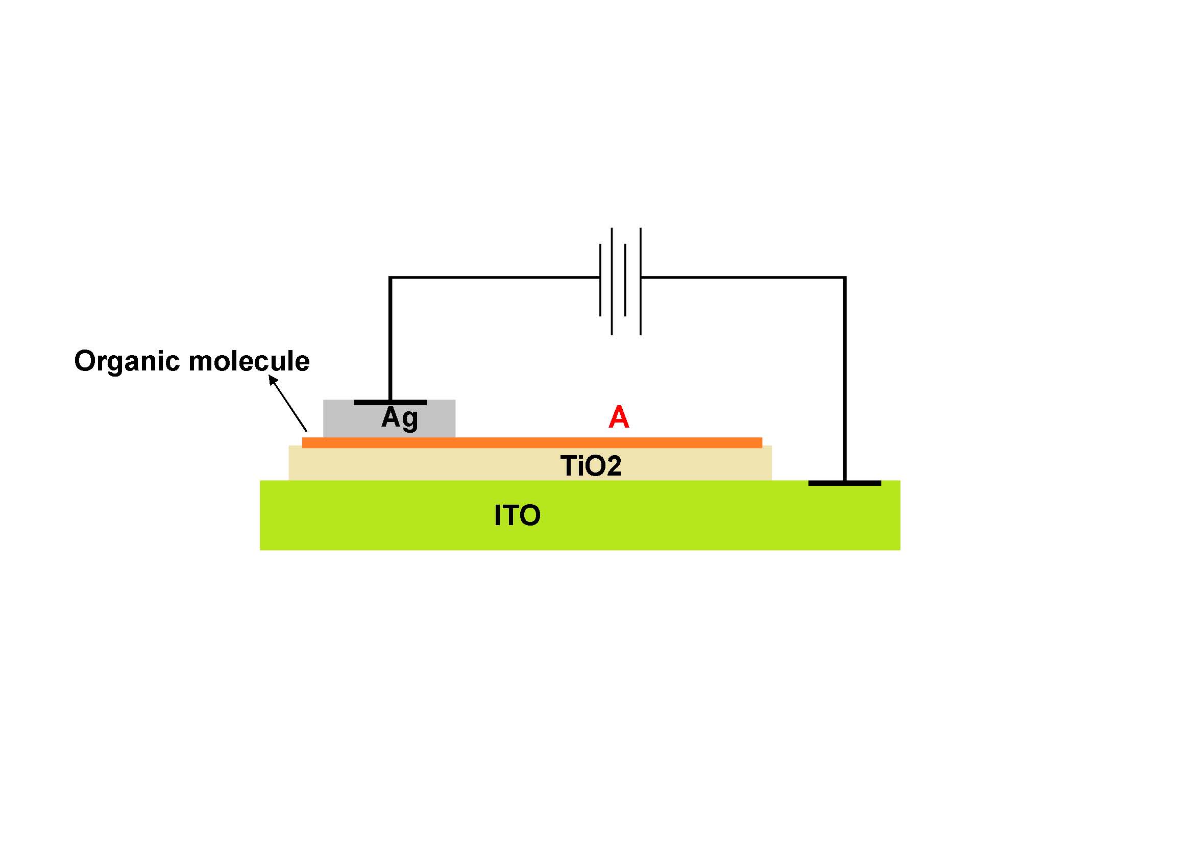 大家看看附图的小半导体器件,在银电极旁边的有机分子区域(红色A区域)能感受到电场吗?