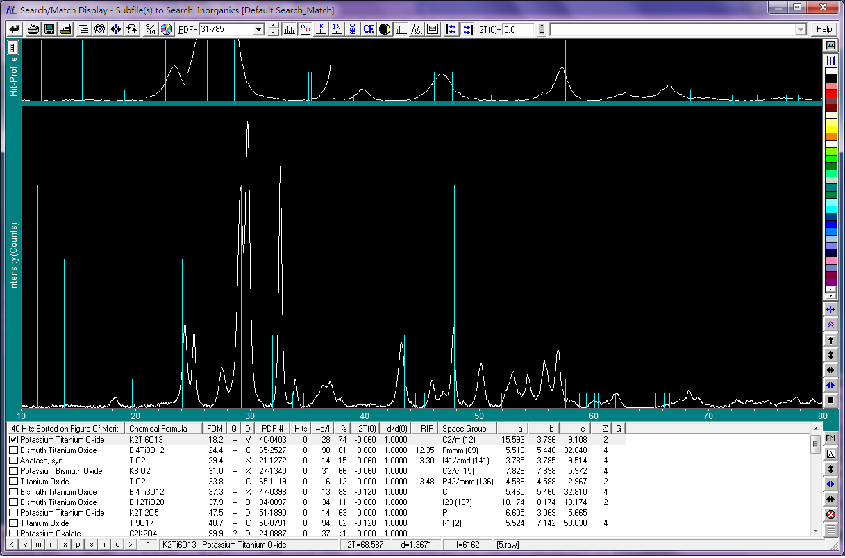 衍射只是表征产物的一种方式。现在从你的衍射数据和处理样品的条件来看,可能包含一些未结晶的组分和含水的结构。建议你先做TG-DSC,看看什么温度下可以脱去结晶水。另外样品一定要做必要的退火处理。 4楼给出的K2Ti6O13是需要商榷的,因为低角度的峰完全不对。 |