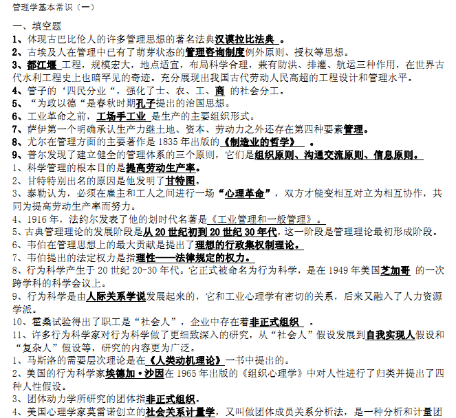 【习题资源】管理学基本常识题集-含答案
