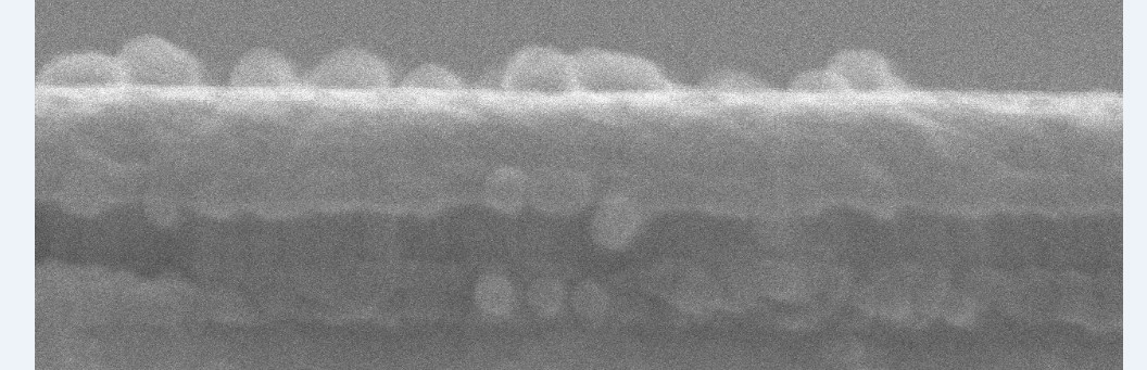 感觉界面不清楚,而且用SEM观察断面的过程中发现有很大的颗粒附着在薄膜截面上,另外薄膜很容易从衬底剥离。