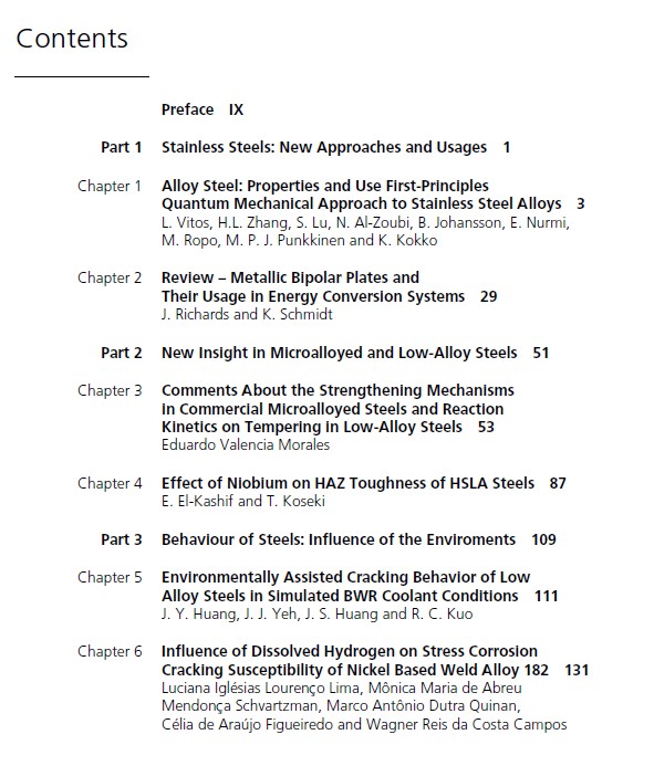 Edited by: Eduardo Valencia Morales ISBN 978-953-307-484-9, Hard cover, 270 pages Publication date: December 2011 Subject: Metals and Nonmetals The sections in this book are devoted to new approaches and usages of stainless steels, the influence of the environments on the behavior of certain classes of steels, new structural concepts to understand some fatigue processes, new insight on strengthening mechanisms, and toughness in microalloyed steels. The kinetics during tempering in low-alloy steels is also discussed through a new set-up that uses a modified Avrami formalism. [ 来自科研家族 小木虫青春动力 ] |
