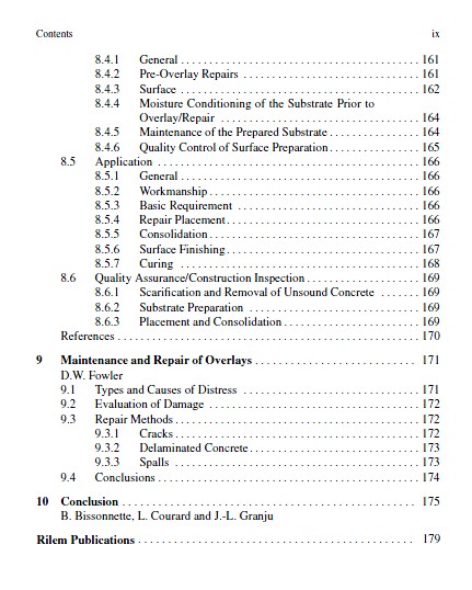 Among different approaches that can be considered for concrete rehabilitation, bonded overlays are often the most economical alternative. The primary purpose of overlays is to extend the life of the candidate structures, either by restoring the quality and integrity of the surface and/or the re-establishing or improving the load-carrying capacity. Nevertheless, the durability of bonded overlay systems still draws concerns in the technical community because of bond sustainability problems encountered in a number of cases. At this time, there is still no accepted design approach or methodology that can warrant the practitioner a successful outcome of the repair. This State-of-Art report summarizes the findings with respect to all aspects involved in the overlaying process. Cover Bonded Cement-Based Material Overlays for the Repair, the Lining or the Strengthening of Slabs or Pavements ISBN 9789400712386 [ 来自科研家族 小木虫青春动力 ] |
