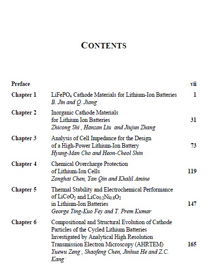 Lithium ion batteries, a class of chemical power sources that use an electrochemical process of lithium ion intercalation into or de-intercalation from host materials, are gaining dominance in mobile electronic applications, and are also showing promise for an upcoming new generation of electric vehicle applications. Since Sony Corporation commercialised rechargeable lithium-ion batteries, the batteries have been widely utilised as the power sources in a wide range of applications, such as mobile phones, laptop computers, digital cameras, electrical vehicles, and hybrid electrical vehicles. This book is concerned with the recent developments in and research of LiFePo4 cathode materials with an emphasis on the synthesis method and how to improve electrochemical performance. Moreover, the efforts made to develop other new inorganic cathode materials for a new generation of lithium ion batteries are reviewed. A systematic semi-empirical way to analyse the constituents of total cell impedance in lithium-ion battery is also presented. In addition, overcharge protection is not only critical for preventing the thermal runaway of lithium-ion batteries during operation, but also important for automatic capacity during battery manufacturing and repair. This book compares three overcharge protection strategies - external circuit protection, inactivation agents, and redox shuttles - to highlight the advantage of redox shuttles for overcharge protection. The safety of lithium-ion battery packs are also discussed, as well as techniques for studying thermal stability, such as differential scanning calorimetry and accelerating rate calorimetry. [ 来自科研家族 小木虫青春动力 ] |