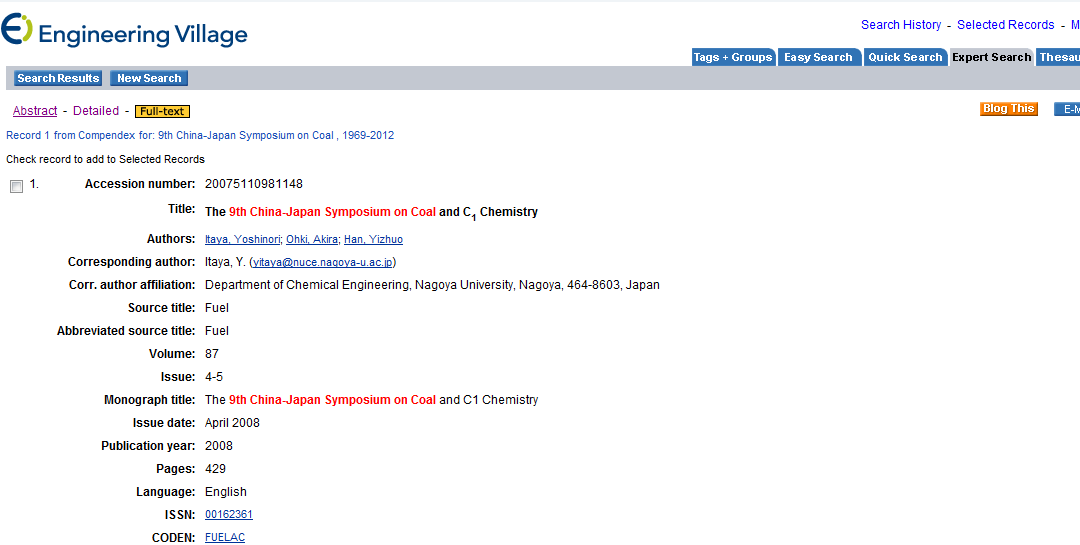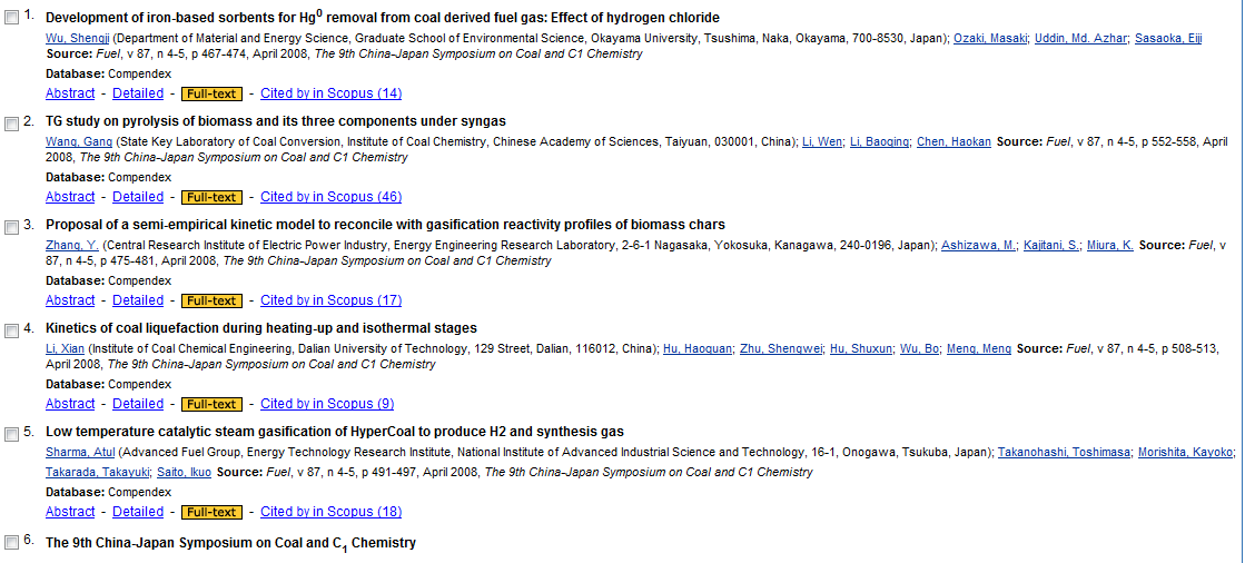 | Yang X Q, Xu S P, Hu G, Liu C H.Proceedings of the 9th China-Japan Symposium on Coal and C1 Chemistry, Chengdu, China, 2006, pp 239-240. 主办单位:中国科学院,在哪可以查到啊,急 |