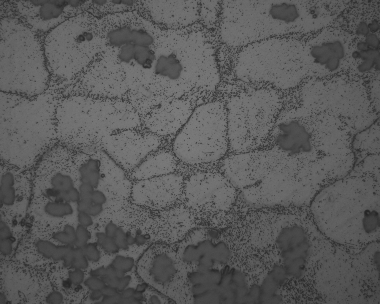 如图,这是CuNb铸造态合金Cu基体金相照片。按理说应该有枝晶的,但是这个看起来像网状的,没有任何迹象成树枝状。整个样品基体都是这样的。这网状的难道是枝晶?也没有看到明显晶界。做的样品大小有15*10mm大。不会有比这个还大的晶粒吧。 500X |