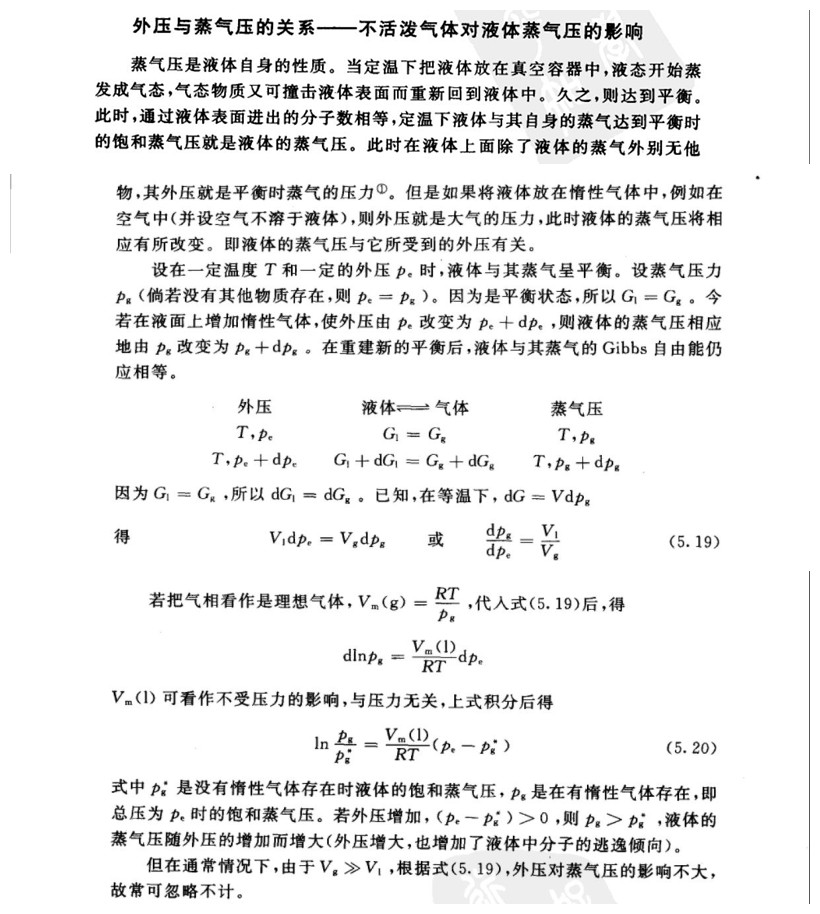 纯液体在一定温度下其平衡蒸气压为何随外压的变化而变化? 请教各位达人了 |