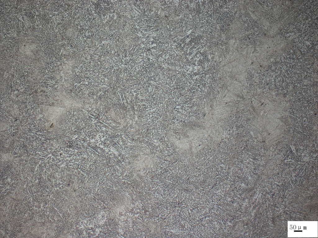 请各位从事金相分析的朋友,帮忙分析下,下面的金相组织是啥。据提供的信息,热处理后应该是贝氏体+马氏体双相钢,请各位给指明下哪是贝氏体(麻烦标一下)哪是马氏体?个人觉得灰白色的区域未腐蚀出来的应该是残余奥氏体,但是贝氏体和马氏体我实在分不出来,谢谢各位了。 |