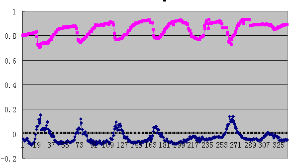 有两数据系列(两种信号的日变化过程),原理上分析它们间应该有一定的关系。用excel给这两系列作了折线图(见图1),能看出它们间同步性很好;但是给它们作的相关关系图上(见图2),发现它们间相关关系不明显。问问大家还有其他什么方法能用来分析这样的两个数据系列间的关系? 我想研究它们两的关系是因为,有时候我只有一个系列的数据,我想用一个系列的数据推算出另一个系列的数据来。 图1 图2 |