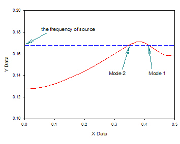假设现在有一光子晶体波导,其波导模色散曲线如下图所示,光源的频率如下图中蓝色破折线所示,由于色散曲线的特殊性,当利用FDTD方法仿真光脉冲在其中传播情况时,往往会激发出多个模式,如图中所示mode1和mode2。我的问题是用啥方法才能只激发出单一模式,例如mode1,求高手指导!谢谢! |