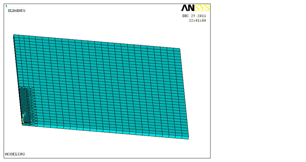 各位大神,我现在在做移动热源加热平板的热应力分析,采用间接热应力分析的方法,如图,在板的左下角网格最密的地方施加高斯移动热源(板是对称的,取了一半做分析),然后在结构分析的时候读入热分析的温度场,按照理论,结构分析的结果中所有节点的X方向位移应该都是负值,但计算得到的结果却有很多节点的位移是正值,Y向和Z向也有同样的问题,哪位大神能帮我看看是那方面出了问题么,多谢多谢啊!!!