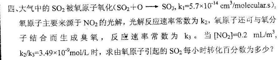 大气环境化学考研题一道,求确定答案,万分感谢~~如果题目太简单大家多包涵。