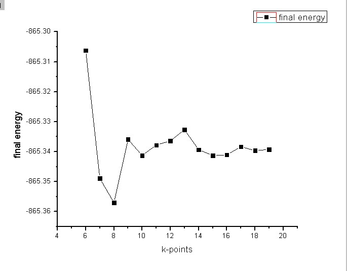 下面是我的能量和k-points图,cut-off取的400ev,这个图画出来有些奇怪,麻烦大家帮我看看这个图是怎么回事,k-points应该取多少比较合适呢?