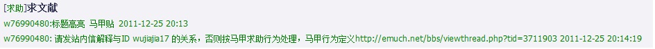 鉴于ID wujiajia17 、ehshg 于同一天(2011-12-25)发帖求助文献,求助文献相似、发帖IP一致,均为58.68.**.**,按照版规PM两个ID,未见解释。 相关链接如下: https://muchong.com/bbs/viewthread.php?tid=3982587 https://muchong.com/bbs/viewthread.php?tid=3982577 根据版规,认定ID wujiajia17 、ehshg 涉嫌一人注册多ID同一天先后求助,为典型的马甲行为! 本版对于马甲求助行为一律严惩,现决定对ID wujiajia17 、ehshg 各处以100金币处罚! 望其他求助者以此为鉴,切莫以身试法,共同营造一个健康,良好的求应助乐土。 [ Last edited by w76990480 on 2012-1-3 at 21:35 ] |