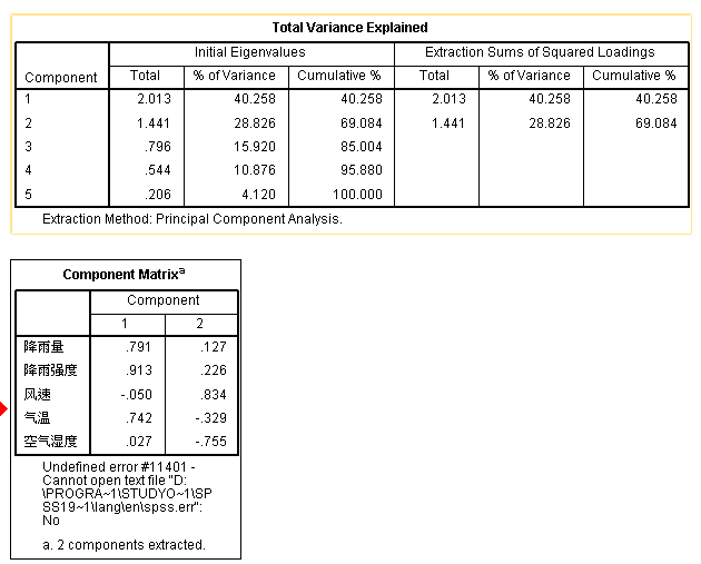 关于主成分 component matrix
