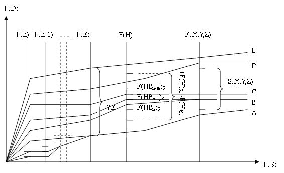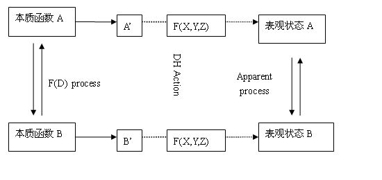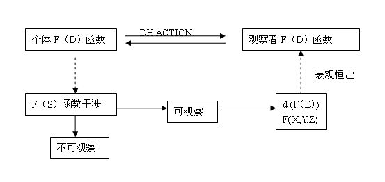 两年前写了<层次与维度>,链接[url]http://muchong.com/bbs/viewthread.php?tid=713635&page=1" target="_blank">http://muchong.com/bbs/viewthread.php?tid=713635&page=1\" target=\"_blank\">[url]http://muchong.com/bbs/viewthread.php?tid=713635&page=1 现将后续部分陆续发表,欢迎大家交流. Basic principle 一、混沌守衡原理 如果宇宙起源于基点后的大爆炸,所有物质都形成于大爆炸后的空间中,那么不论物质还是能量,就整个宇宙而言,其所包含的量是不变的。物质和能量是可以转化的,其本质上是一样的,我们把这个东西叫做混沌,表示它的存在性和不确定性。 我们的世界是有可见的三维与不可见的四维以及F(D)场构成。当三维萎缩,最后到零维空间后,就只剩下F(D)场了,可以说这个最原始的F(D)场就是混沌。它是所有空间的起源,宇宙在基点时可以看作一个相似相容的混沌场,没有观察者,没有实际的确定性,但它却是存在的。由于F(D)场函数自身具有相干性,其本身就在不断变化中,F(D)场函数分裂出许多子函数场,相似相容子函数构成于同一维度,其中又包含不同的层次,不同维度的F(D)场子函数之间相似相容部分组合成多维度特征,实际上物体本身也是不同F(D)场函数组成的复合体,场函数之间的作用使我们成为一整体,同时也能影响其他F(D)场函数体,场函数的作用被我们称之为力的形式表现出来。可以认为我们一切的活动也是F(D)场函数作用的表现,从一种形式变为另一种形式(比如由可见质量转为不可见能量),而这些都是从原始F(D)场,也就是混沌衍变出的,从总量上看 ,所有空间的总函数场是不变的,不同空间可能由于跃迁而引起F(D)场的空间之间的变化,比如二维到三维,从二维看,F(D)场减少了(由于测量方法问题,它不能在二维测准三维,见MM理论),而三维看却是增加了,但两个维度空间的F(D)场量实际上是没有变化。如图10 可以说,整个所有空间的总量场是不变的,无论F(D)场函数以何种形式出现,其总量是和原始F(D)场函数相同,也就是这个混沌是首衡的。混沌首衡原理是DH理论的最基本原理,是我们能够认识世界的基本。 二、等价交换原则 我们世界的物质无时无刻不在相互作用着,区别仅在于作用影响的强弱,能否被我们观察到而已。物体存在于周围复杂的场环境中,受着各种F(D)场函数的影响,同时物体也有自己的F(D)场函数,要保持自己的F(D)场函数稳定,就需要克服外部F(D)场函数的影响。这必然会消耗部分自己的F(D)场,而又要保持自身F(D)场函数不变,就需要从外部补充。也就是吸收可以利用的F(D)场函数,通过自身F(D)场函数的融合改变,以转化成可以克服外部F(D)场影响的F(D)场函数,但是这种过程往往不是完全对称的,总有部分差异,使外部场的影响不能完全克服,只能延缓减小影响程度。另一方面,物体要影响他物体,也要消耗自身F(D)场函数,对外部影响越大,消耗越大,需要补充越大。 物体要存在于空间中,就必须与外部不断进行着交换。从量上看,总是趋向于等价交换。等价交换不仅存在两个F(D)场函数间,多个F(D)场函数也服从等价交换。实际上我们这个空间的物体更多是在多个F(D)场函数交换中,如图11 物体B作用于物体C,作用影响的大小取决于消耗B的F(D)场的多少,也就是消耗B与作用C的场是等价的。同时,假如物体B消耗自身场后,又从物体A补充,那么要保持自身F(D)场函数稳定,吸收A的场就需要等于B的消耗,但是,由于物体往往是处在复杂的场环境中的,所以至少会受到物体D的作用,同理B要保持自身F(D)场函数稳定,就需要消耗自身部分场克服D场的影响,但总不能完全克服,仍有部分D场影响了B场,所以不论任何物体都不可能永恒不变,区别仅在于维持自身F(D)场函数能力的强弱,也就是克服外界F(D)场影响能力的大小。但是,无论如何,几个物体间交换的总量是等价的,B吸收A的场,作用于C,克服于D。他们之间是趋向于等价交换的。 三、中心涟漪法则 物体都有保持自身场函数稳定的性质,也就是保持现有F(D)场函数不变的性质。一方面,物体受到外界场的影响,整体F(D)场函数受干扰,这就需要抵消外部场,消耗的F(D)场需要外部补充才能维持自身F(D)场函数稳定;另一方面,物体内部子F(D)场函数也在相互影响着,为了维持自身稳定,也需要外界场的作用和补充。从这个意义上讲,物体都在以自身为中心,与外界相互影响进行着的交换过程,目的是为了维持自身F(D)场的稳定。但是,由于物质内部子F(D)场函数之间也在相互影响着,所以要实现永恒的稳定是非常困难的,并且就但从外部环境看,要实现外部F(D)场作用的完全抵消也是非常困难的。正因为如此,物质所寻求的F(D)场函数平衡状态是在不断变化的,从一种平衡状态转向新的平衡状态,而且,由于F(D)场随时都在变化(不同物质的变化速率是不同的),物质一直都在追寻稳定状态,但却始终不能达到。当物质的场函数需要状态突破内部F(D)场函数关系时,物质必须改变内部F(D)场函数关系,所表现出来就是物质形态的改变。 物质这种以自我为中心,与外界场进行影响交换的过程,可以用洛伦兹环表示: A代表物质;B代表外部某场; 以A,B为中心,环绕着场环,每个环代表特定的场函数,每个环都在绕中心旋转,这里暂不考虑旋转的速率,如图12 对物体A,其内部场函数通过层层扩展,然后影响到外部,同时,环的旋转代表内部场函数作用。现在我们只考虑两个环,且环速率稳定,则假定(1,1)是稳定状态,但是由于场环在运动,还会