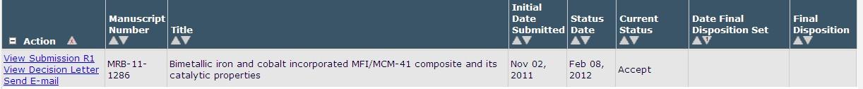 materials research bulletin修改,已经修改后接收,从投稿到接收历时三个月