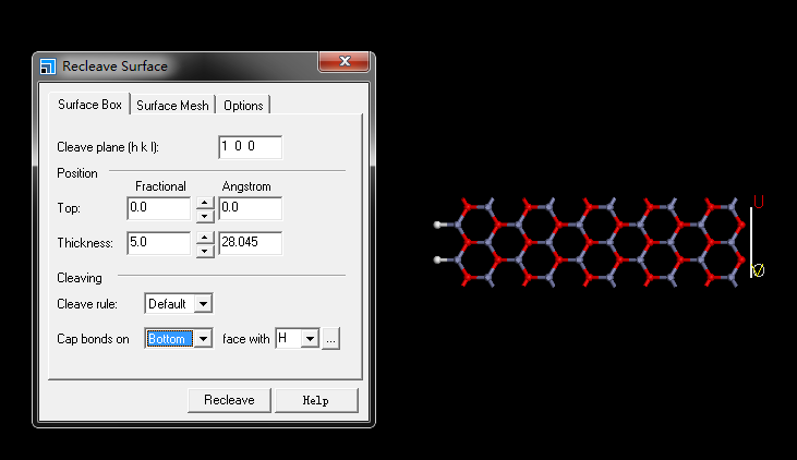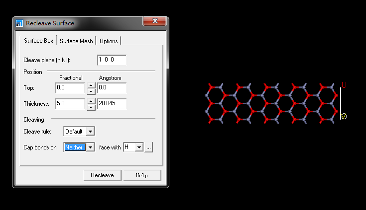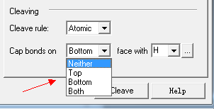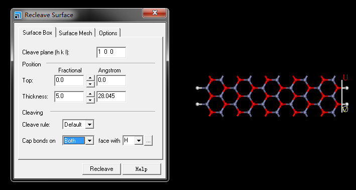 这个选项主要是在表面悬挂键上加其他原子,可以在”face with“后面选,我这里选择氢原子,然后cap bonds on 不同选项