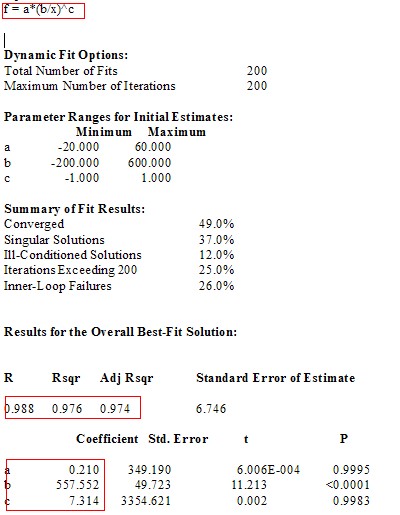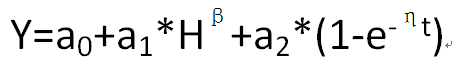 这应该叫二元幂函数吧,概念有点混了,但应该也不算严格的幂函数吧! 切入正题,如式所示,其中y是关于H和t的关系式,其余均为未知参数,现在手上有y与H和t的对应值,比如H=203.6 t=3 y=786.03………………如何能求出其余的a0,a1,a2,β,η这五个未知参数!我在SPSS里试过,但在非线性回归那一块我只找到求一个自变量未知参数的方法,第二个未知参数就不知道怎么导进去的!然后不知道MATLAB里有没有相应解这种方程的函数!或者经过变形利用其它函数或软件可以计算的,请高人指教! |
