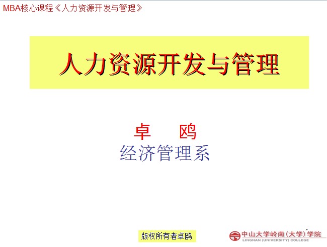 【课件】MBA课程—人力资源开发与管理(中山大学)