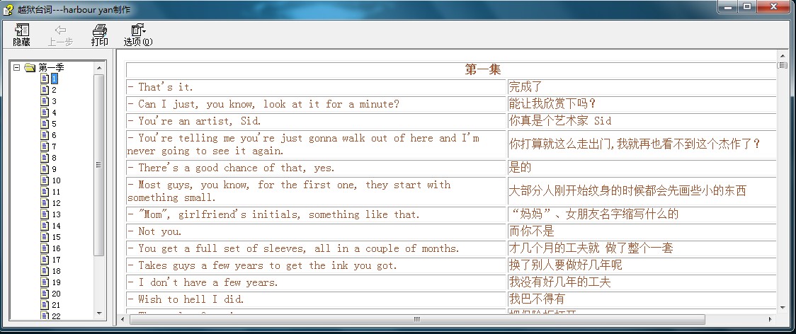 越狱刚刚看完,里面的很多经典台词想必大家都像学来玩玩吧,小弟最近找到一个很不错的资源。中英对照版的台词,全集.下载地址 http://115.com/file/e7zfnble# 台词.rar |