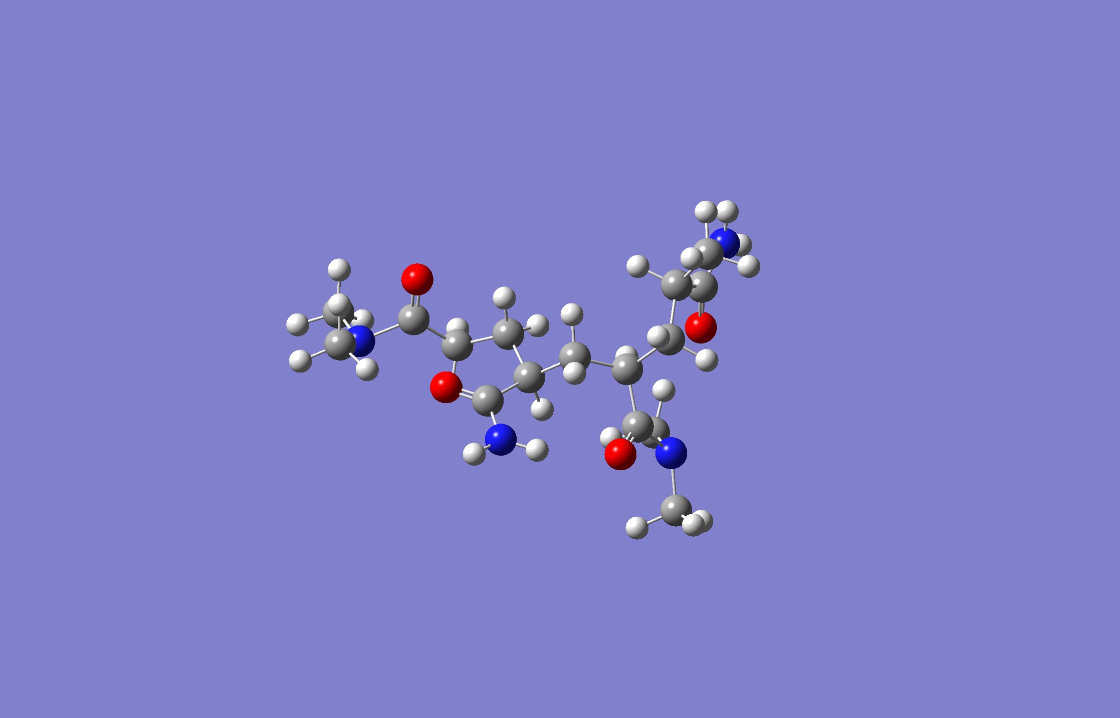 那位大侠帮忙分析一下错误的原因,guassian提示是分子结构的错误(terminated in the input file),但我又找不到错误在哪啊(这个结构是通过了AM1优化后的结果啊),非常感谢。上传的图片是输入的 分子结构。由于论坛字数限制,请下载附件查看完整的输出文件,辛苦,谢谢。