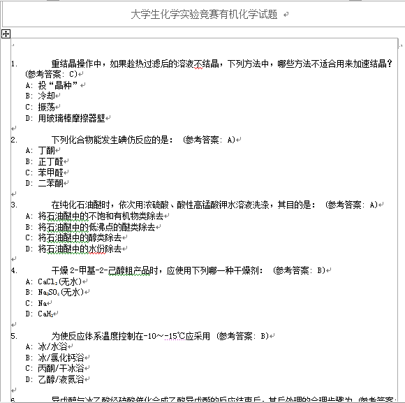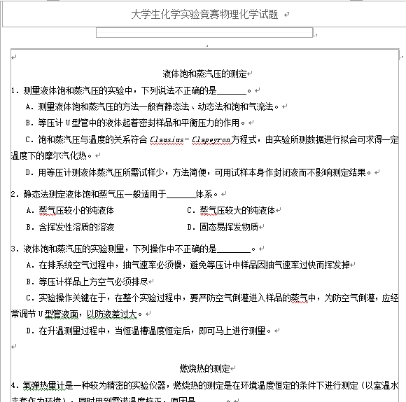 【资源】全国第五届化学实验竞赛笔试试题及答案
