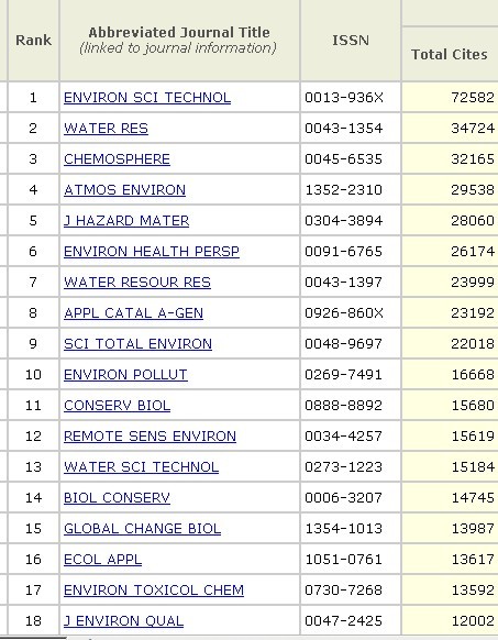 | 似乎业内人士都认为EST是环境类的第一,但是从最新的SCI统计来看,无论影响因子还是影响力指数,比EST高的杂志还有一些,为什么大家都认为EST是第一呢?到底怎么看一个杂志在环境类的排名呢?如果EST第一,WR是不是第二? |