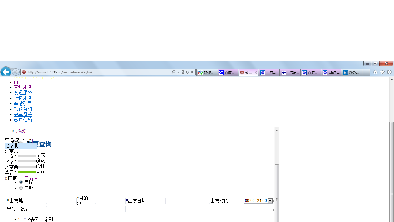 用ie9上12306网站订票页面显示不完整
