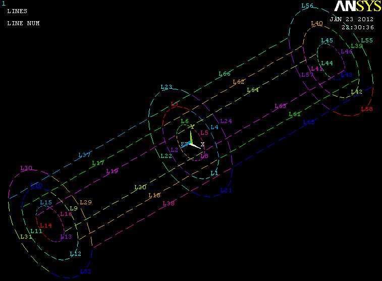 2 再执行 NROTATE 命令 (菜单路径好像是: Main Menu > Preprocessor > Modeling > Move/Modify > Nodes > Rotate Nodes CS > To Active CS 可能有误,你查一下),把所有节点的坐标系旋转到圆柱坐标系。