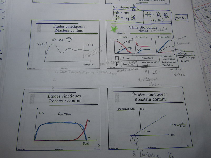 有两张法国某大学环境工程硕士课的课件照片,不是太能明白途中描述的公式含义,看着应该是monod方程,不知道哪位达人能帮我解释一下,谢谢了!