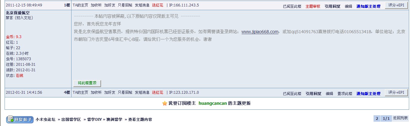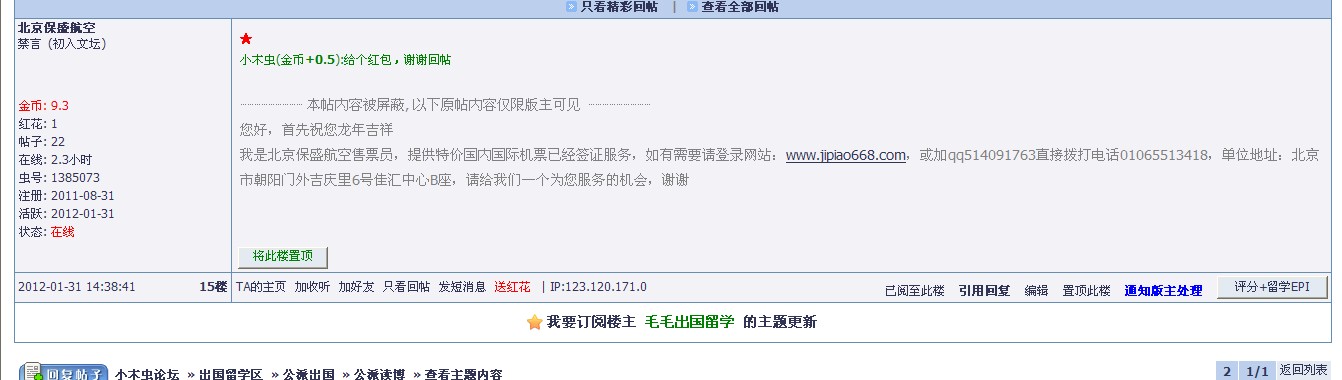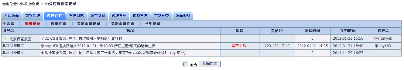 对ID 北京保盛航空 全论坛永久禁言的处罚备案