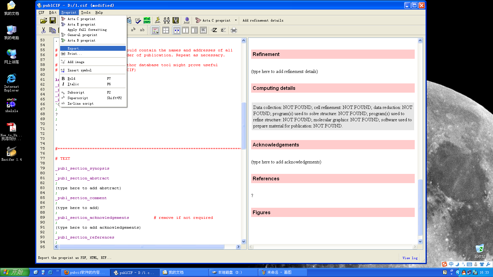 pubcif软件的内容如何转变为文档保存
