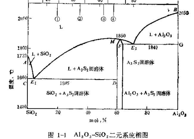 《铝硅系耐火材料》第一章中有段说Al2O3-SiO2相图的,并举例说“一硅砖含40%Al2O3,1595℃达到低共熔点时的液相量为50%左右”,弱弱的问一句,这50%左右的液相量是怎么计算出来的? 自己估算出来怎么是40%左右呢? 含Al2O3 40%,当温度升高到低共熔点,(65%-40%)/(65%-5.5%)=40%左右。 铝硅系相图 |