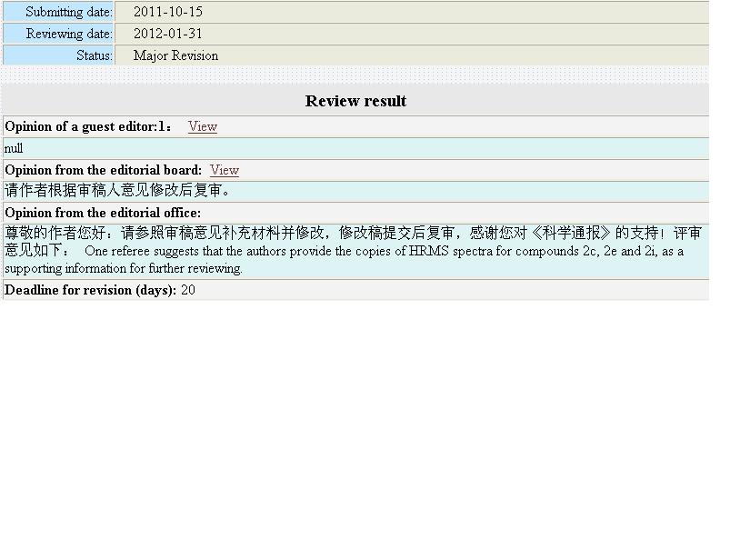 投了一篇稿子到Chinese Science Bulletin,2个多月后让我大修,但是审稿人意见却是空的(null),只能看到editor office的意见,也只有一条,让我把几个化合物的高分辨质谱图附上,还让我按照审稿人意见逐条修改,这是怎么回事呢?要怎么修改啊