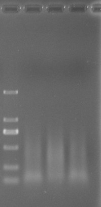 刚做微卫星的开发,我用的是磁珠富集法,磁珠富集后的产物pcr30个循环,结果发现条带不是很亮,不知道哪位大侠做过这发面的,有没有遇到过这种情况,感觉是前面洗脱次数太多了还是没杂交好还是别的什么原因,想请教一下各位大侠,在下感激不尽 右边的三个是富集后的pcr电泳图 |