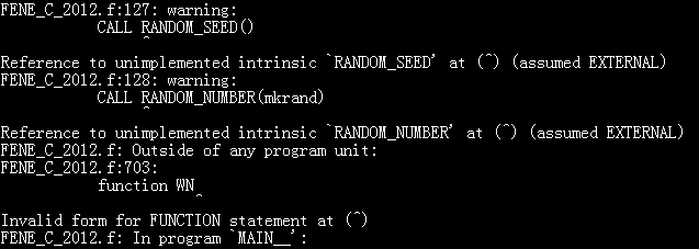 在g77编译程序FENEC_2012,出现问题: 这是不是说g77库函数里里面没有Random_seed和Random_number,如果没有哪里可以找两个子程序,然后我把它们和主程序放在一起编译? 请大家帮忙,谢谢 |