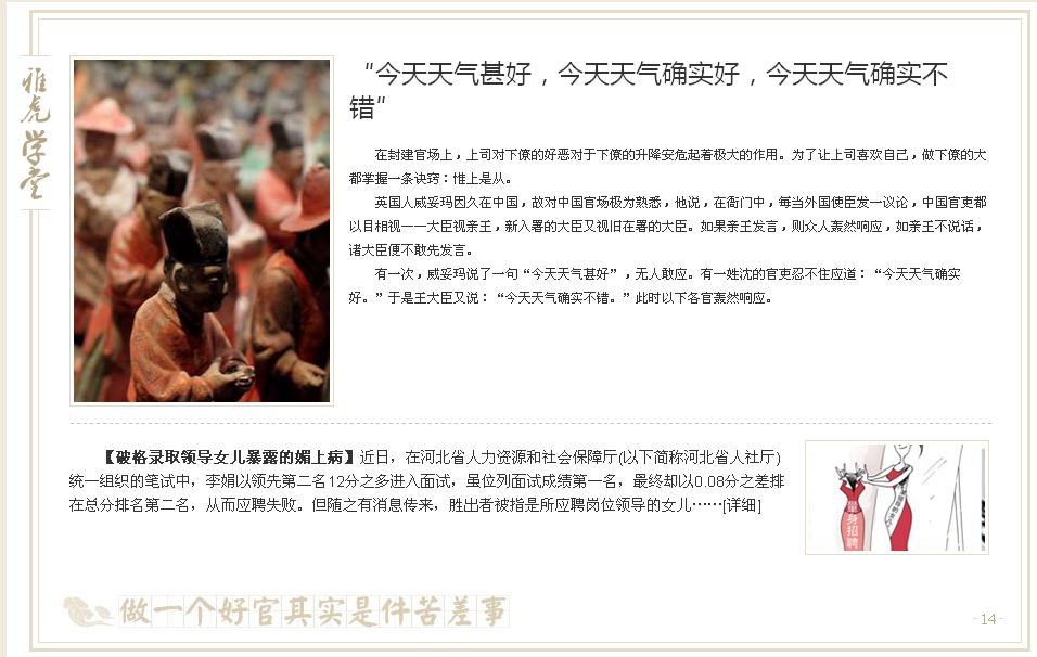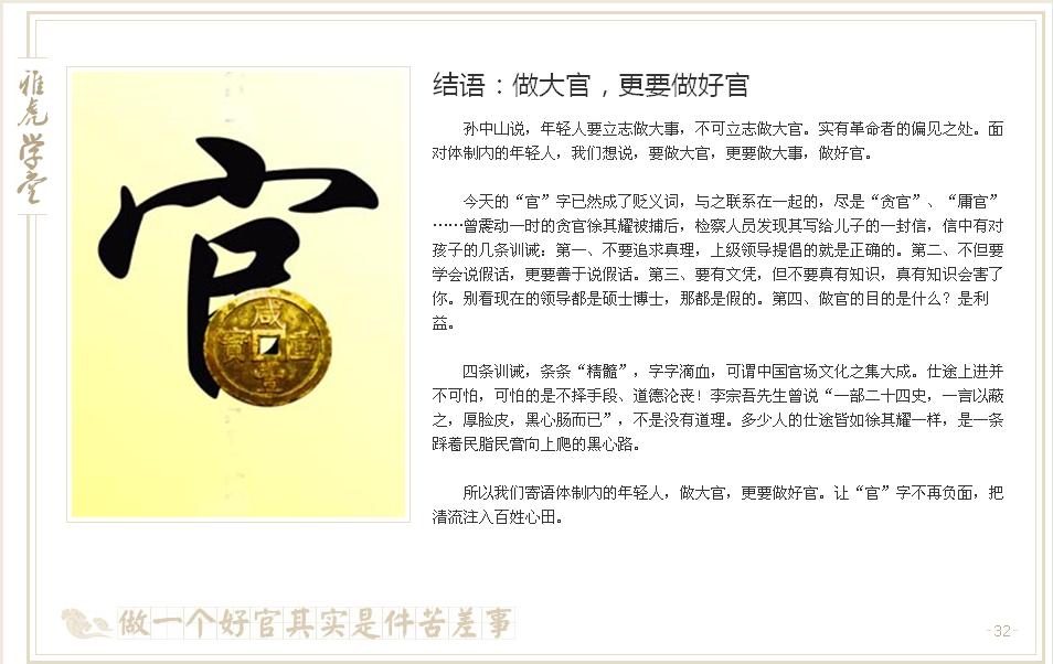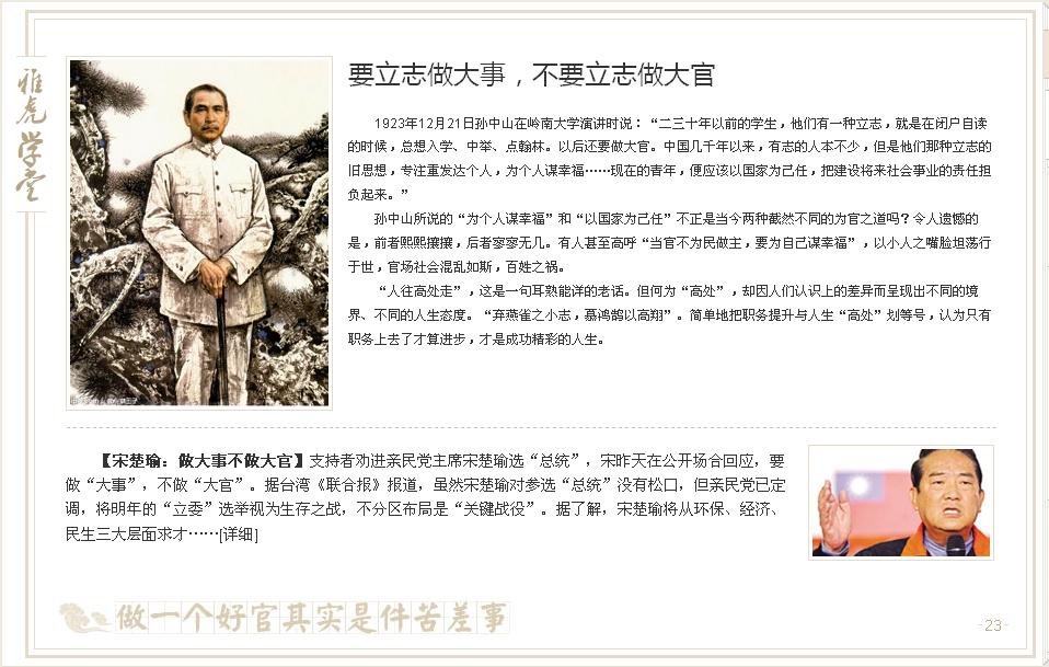 做大事,做好官 转载自 http://news.cn.yahoo.com/yhxt/weiguanzhidao/ |