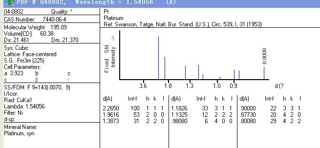 铂晶体各个晶面的的晶格间距是多少?紧急求助!!谢谢!!非常感谢!!